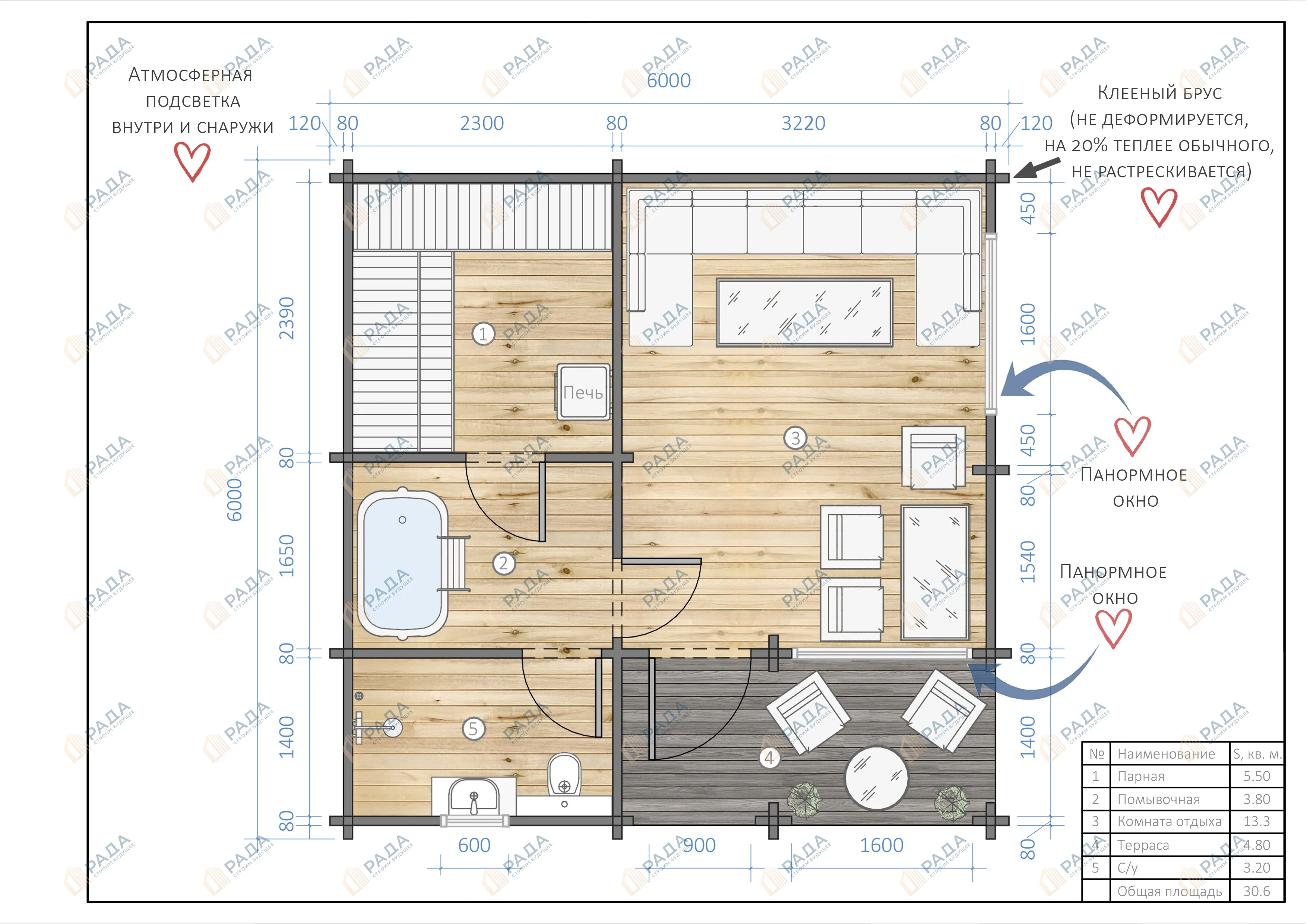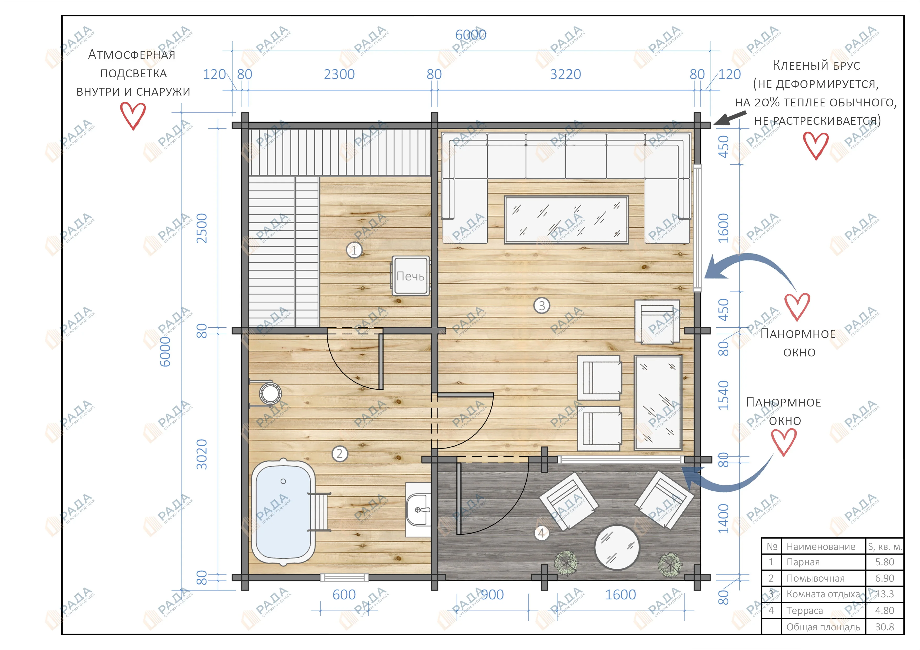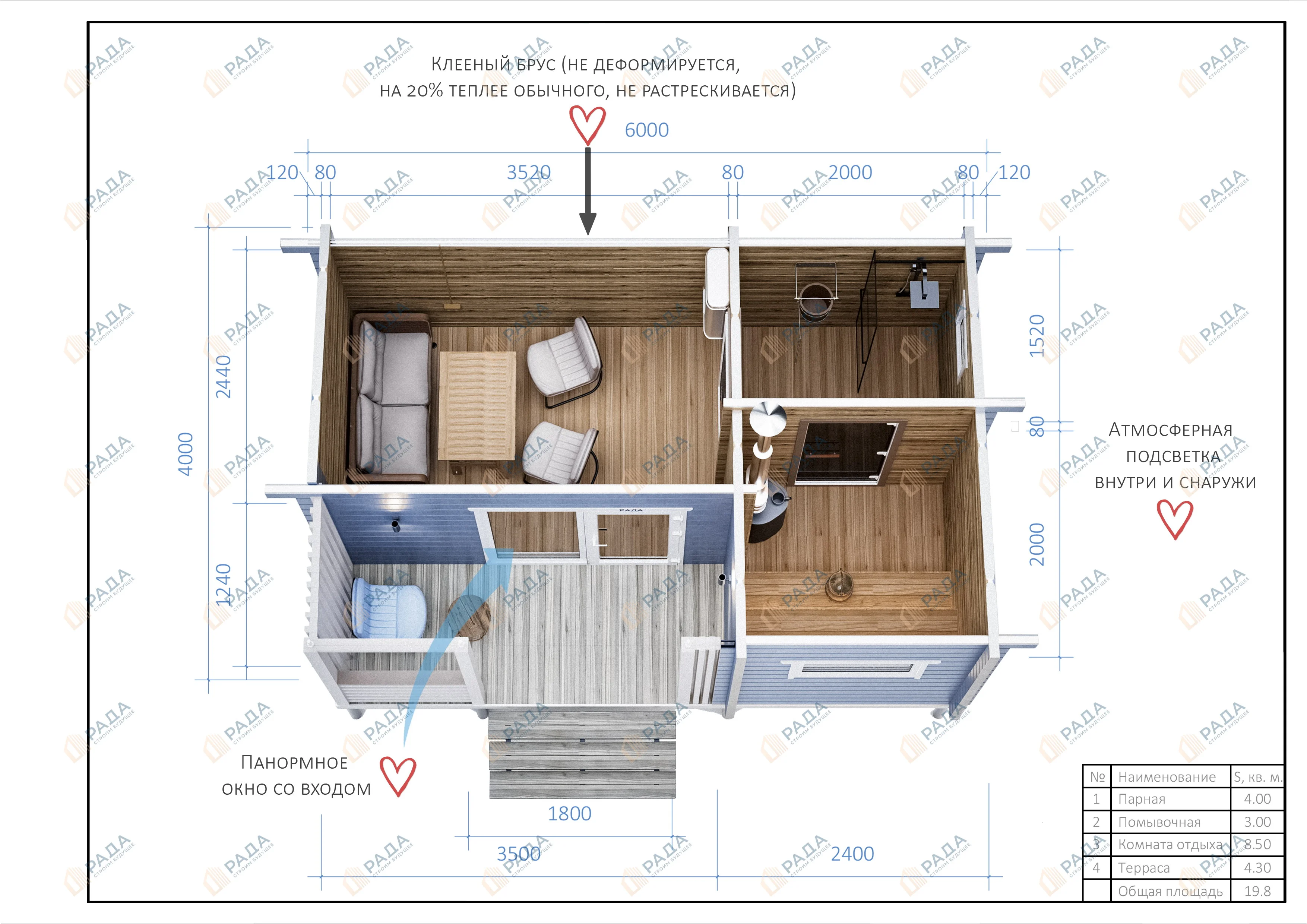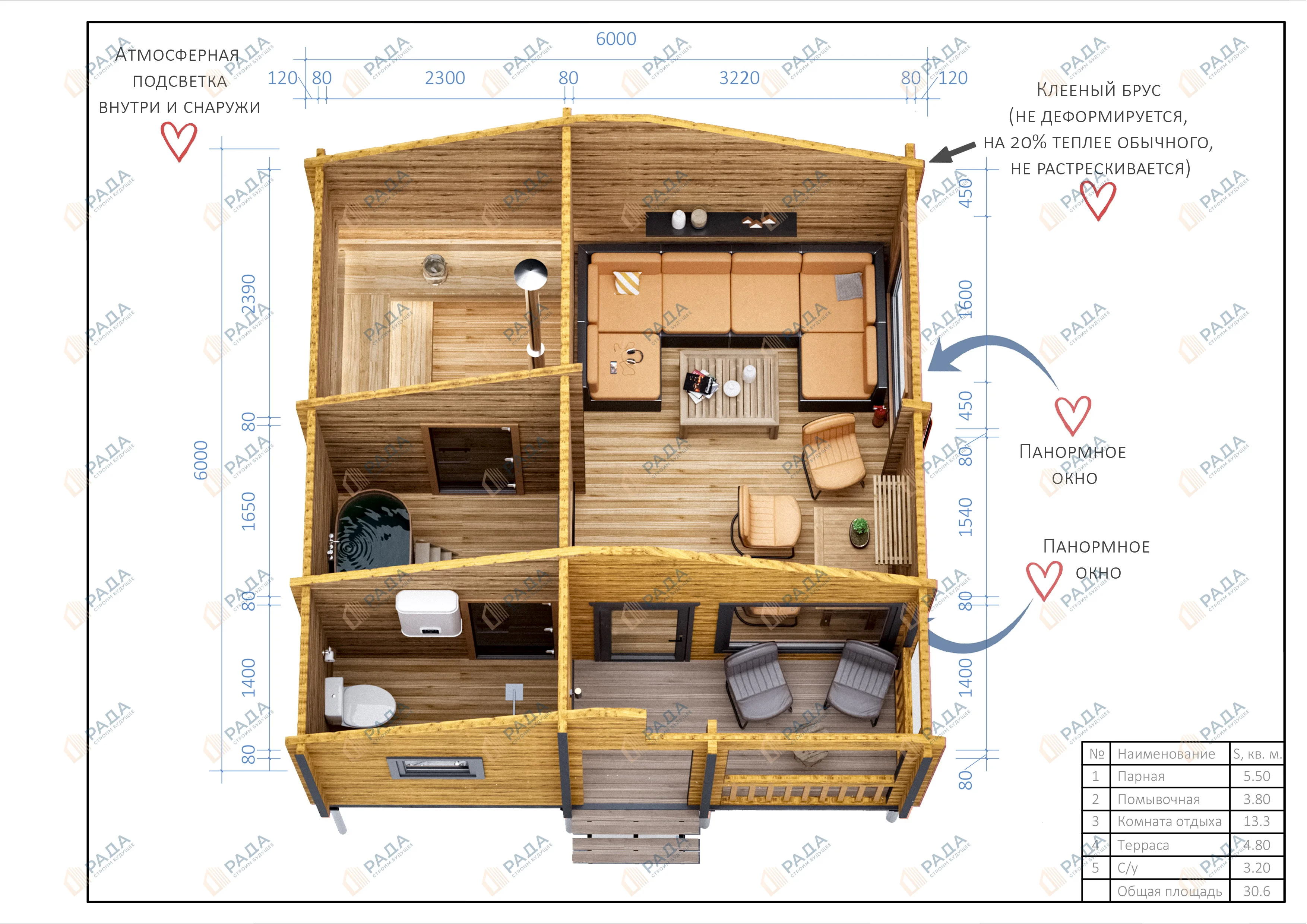 Проект бани 6х6 метра раработан для тех, кому нужно всё и даже больше! Здесь Вы найдете просторное парное отделение и комнату отдыха, а санузел не будет "съедать" полезное пространство. Помимо просторной планировки, также особое внимание уделили экстерьеру, который не оставит равнодушным даже самых требовательных клиентов.