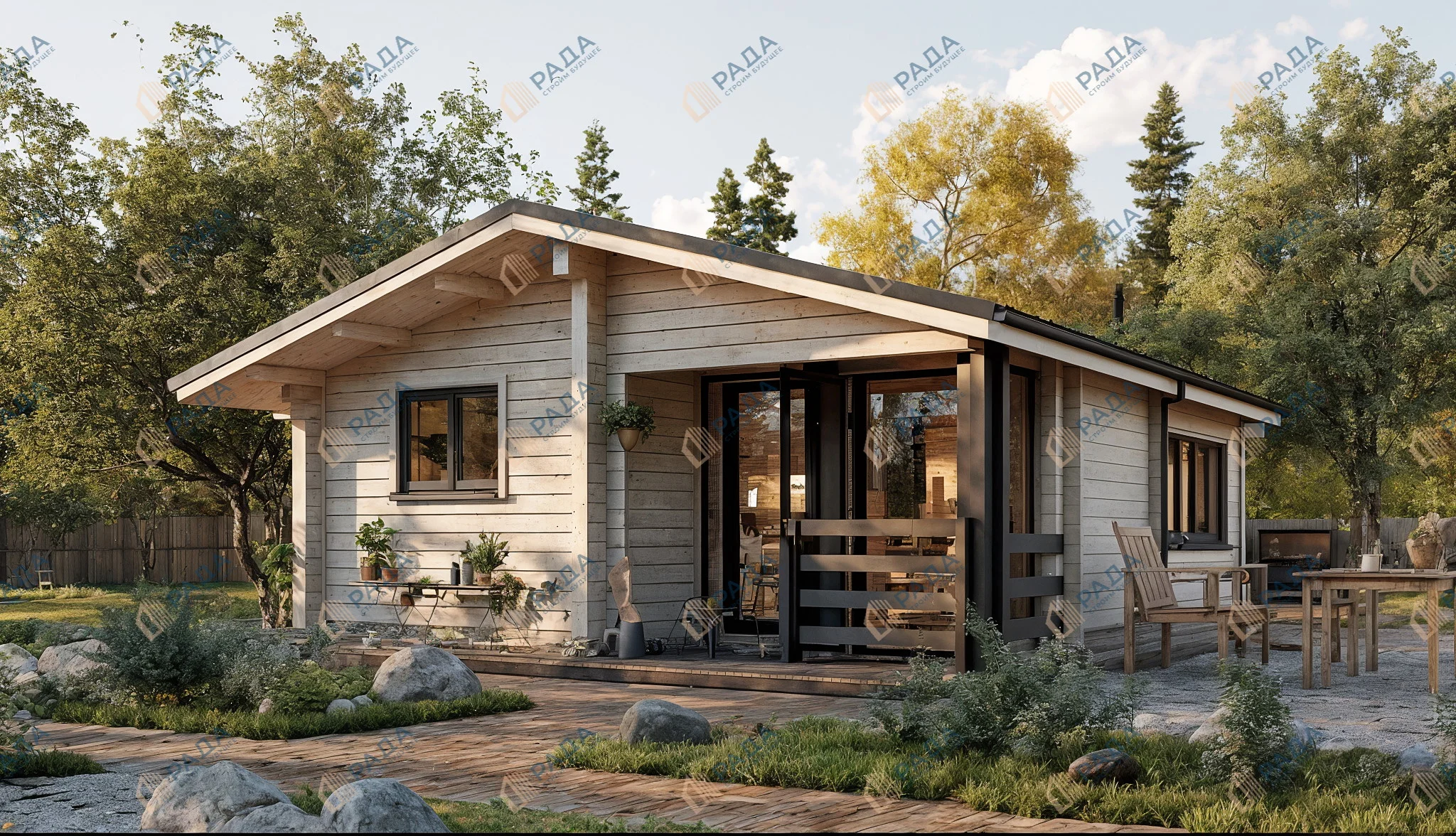 Модель бани является мобильной и разработана специально для тех, кому не нужно ничего лишнего. Данная баня без проблем будет выполнять свои необходимые функции, а её установка на участке займет всего пару часов. Объект в любой момент можно будет перевезти в другое место.